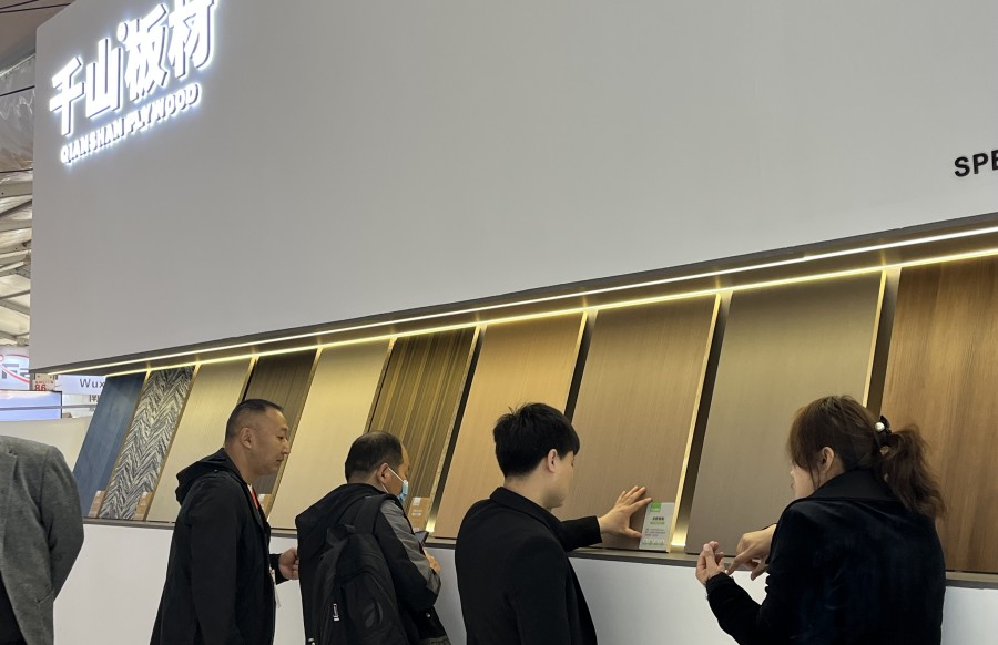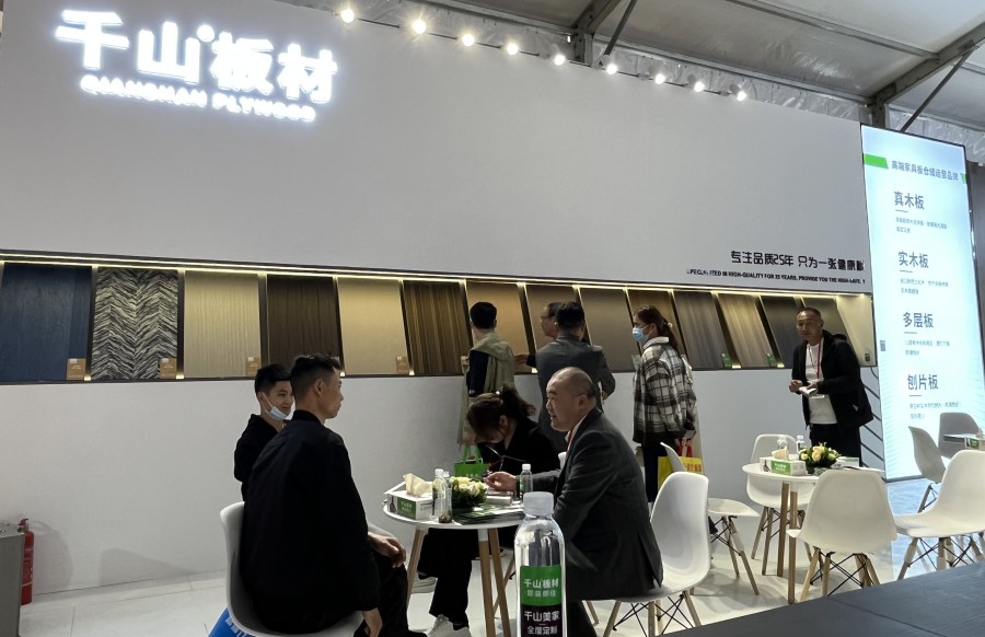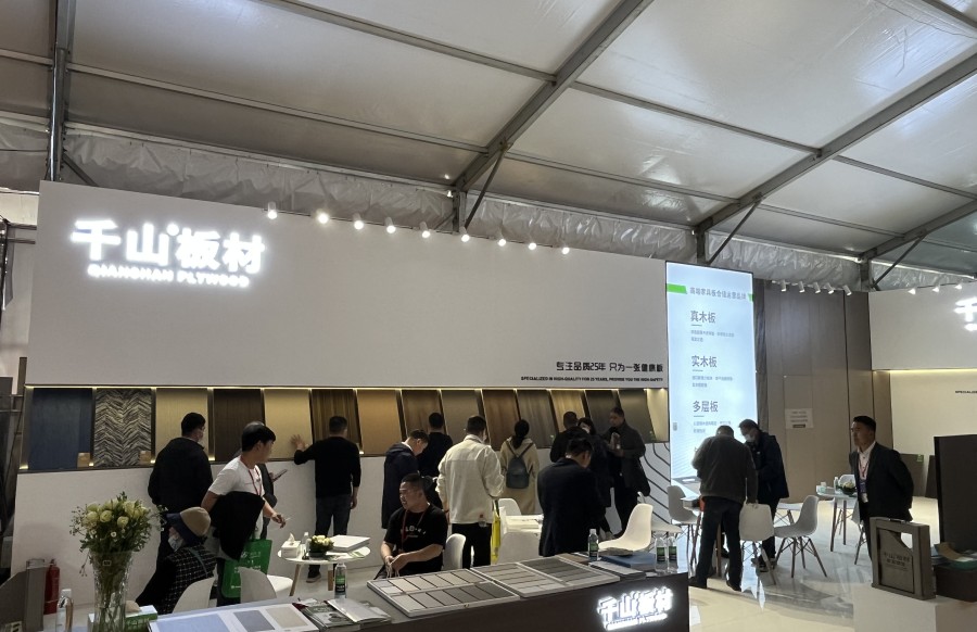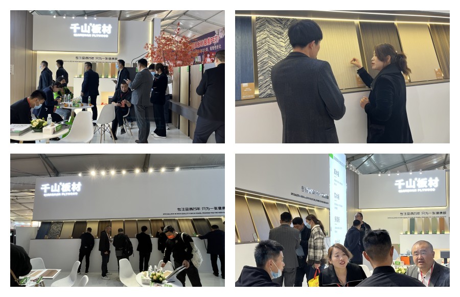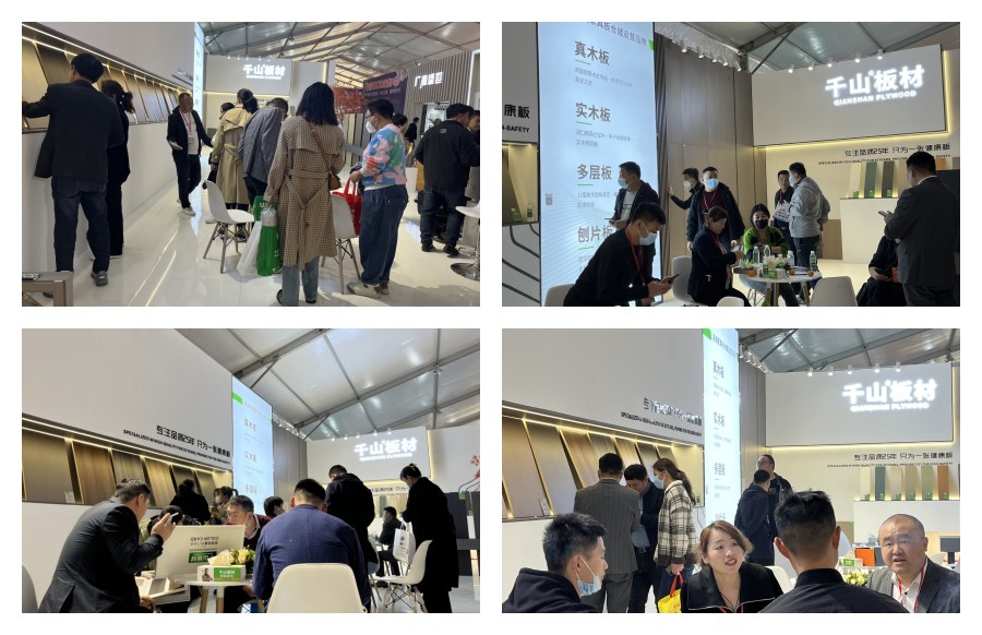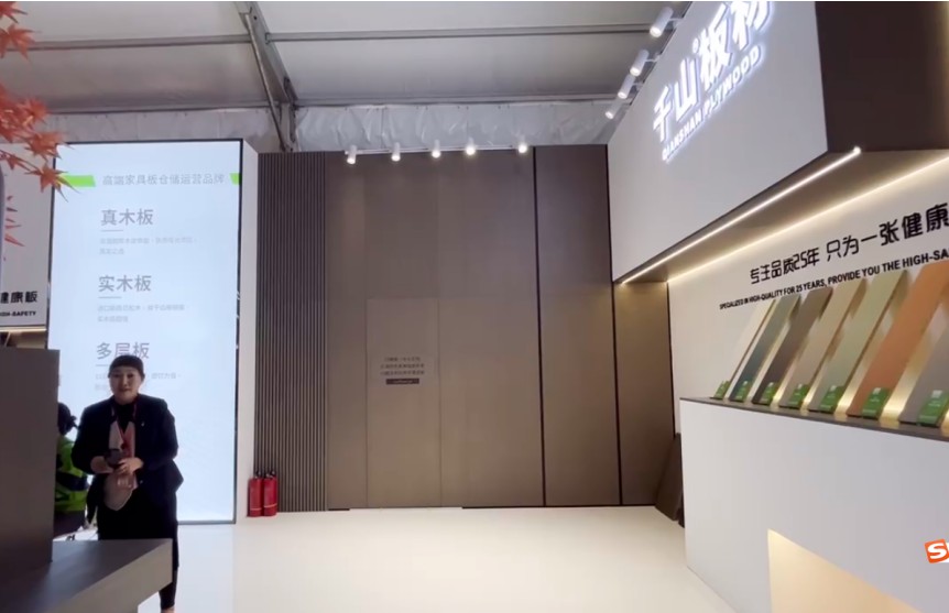 此次展會(huì),千山以“高端家具板”為主題,打造簡約、有設(shè)計(jì)感的體驗(yàn)場館。其中,家具板新品真木板、實(shí)木板、同色室內(nèi)門備受關(guān)注,吸引眾多觀展客戶圍觀咨詢。