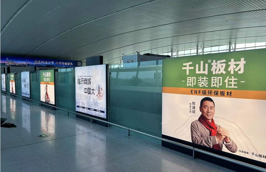 機場廣告以“千山板材,即裝即住”為主題,進行高頻次持續曝光,形成強大的品牌效應,使得千山品牌理念,以及品牌形象深入人心。