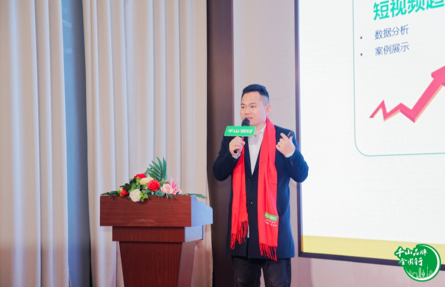 培訓升級,精準賦能。千山品牌事業部品宣經理張新江對千山短視頻同城獲客系統做了全面解讀,從賬號搭建、視頻拍攝、流量扶持三大模塊,全面賦能經銷商伙伴。
