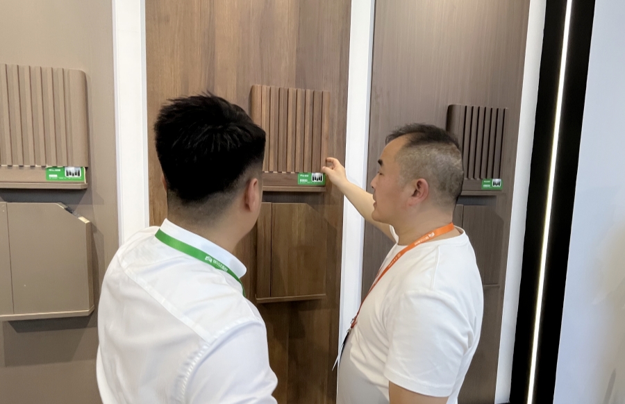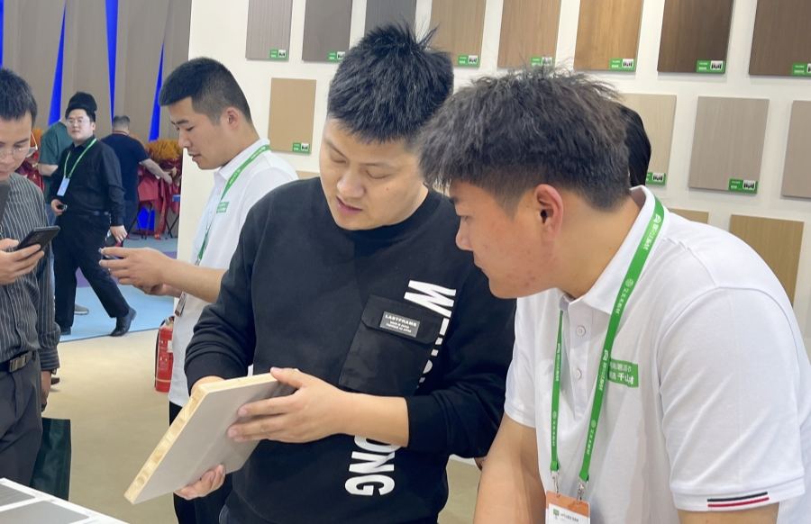 本次展會,千山板材上線四大品類,包括實木大刨片(49尺)/實木小刨片(48尺)/實木多層(48尺)/實木香杉木(48尺),同時涵蓋PET門板(48/49尺)。
