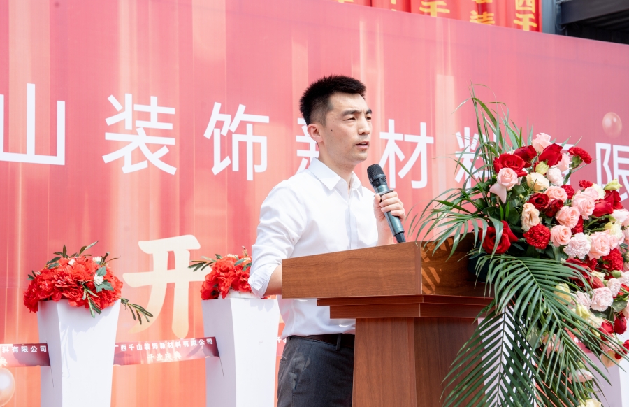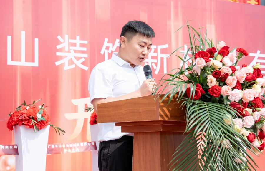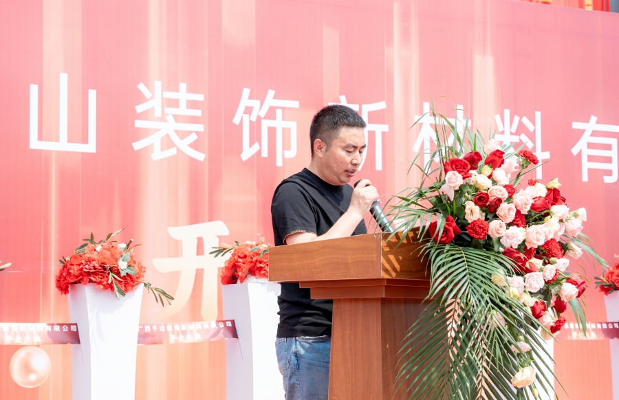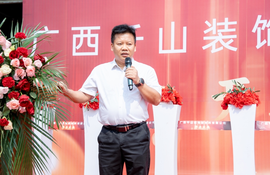 隨后,廣西千山裝飾新材料有限公司總經(jīng)理邵廣峰發(fā)表講話。邵總表示,廣西生產(chǎn)基地將秉承集團(tuán)的發(fā)展宗旨,在政府和協(xié)會的領(lǐng)導(dǎo)下,整合利用市場資源優(yōu)勢,加強(qiáng)管理、提升技術(shù),以高昂的熱情積極投身于各項(xiàng)生產(chǎn)經(jīng)營活動,助力集團(tuán)的高質(zhì)量發(fā)展,同時為推動行業(yè)的發(fā)展作出應(yīng)有的貢獻(xiàn)。