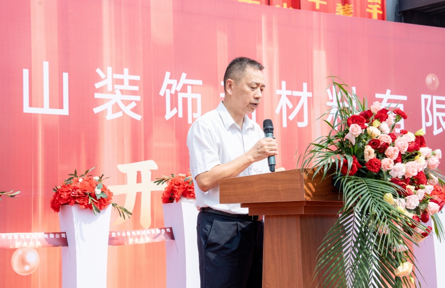 慶典現(xiàn)場,融安縣人民政府副縣長陳遠(yuǎn)昭、融安縣工業(yè)集中區(qū)管理委員會副主任藍(lán)代勛、融安縣香杉協(xié)會秘書長韋軍先后致辭,為廣西千山裝飾新材料有限公司的正式開業(yè)表示熱烈的祝賀,并送上了美好的祝福。