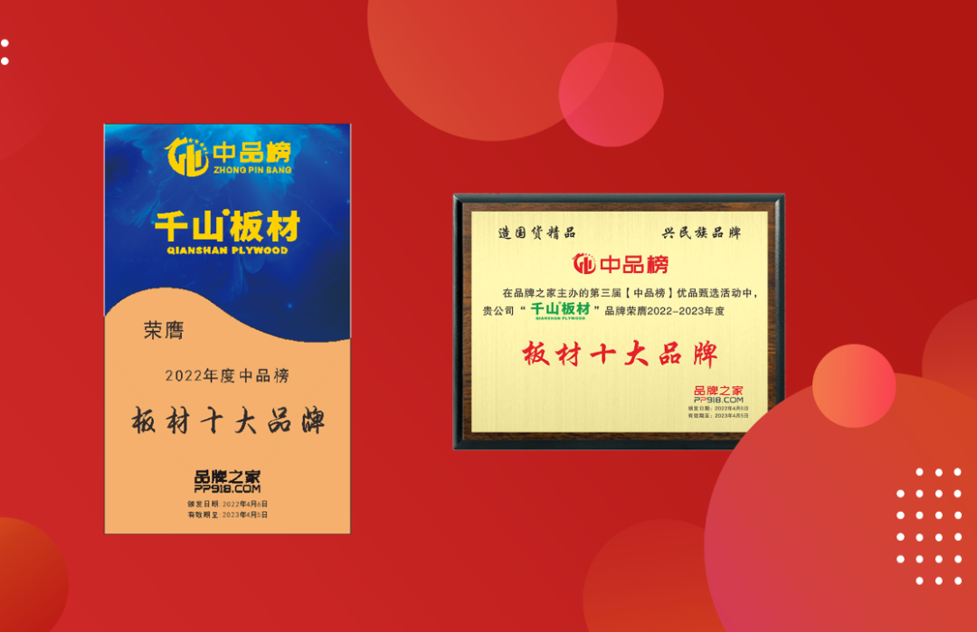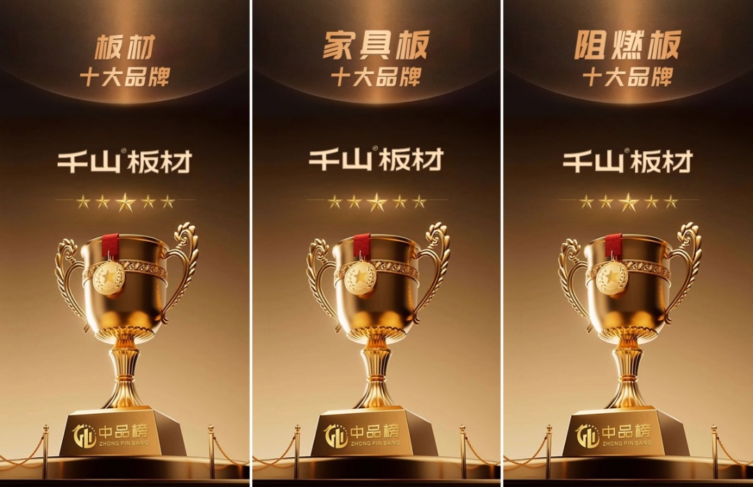 繼2021年榮獲中華板材網“中國板材十大品牌”、“生態板十大品牌”雙項殊榮后,千山板材載譽攀登,多年來相繼斬獲“板材十大品牌”、“板材影響力品牌”、“家具板十大品牌”、“2023年度最受設計師喜愛建材品牌”等多項行業榮譽,傳遞優秀企業的榜樣力量,積極助推行業發展!
