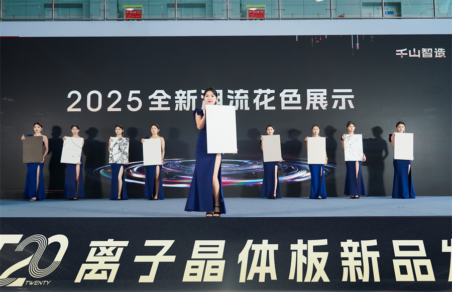 作為本次發(fā)布會(huì)的又一重頭戲,千山板材2025新品花色也成為了眾人矚目的焦點(diǎn),王總揭開(kāi)其神秘面紗:布紋系列—云錦灰布紋、云錦白布紋,石紋系列—鐵銹紅、輕奢水磨石、白玉洞石、水墨潘多拉、冰紋奢石,數(shù)碼系列—寶格麗白、灰影木、白影木。