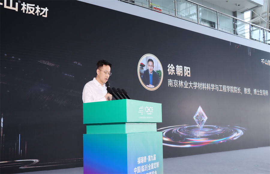 南京林業(yè)大學(xué)材料科學(xué)與工程學(xué)院院長(zhǎng)徐朝陽(yáng)致辭。徐院長(zhǎng)表示,千山作為家居板材領(lǐng)域的領(lǐng)航企業(yè),始終秉承“健康、環(huán)保、創(chuàng)新”的理念,以卓越的產(chǎn)品力和市場(chǎng)表現(xiàn)力贏得了消費(fèi)者的信賴。T20離子晶體板是千山與學(xué)院共同研發(fā),不僅延續(xù)了千山板材一貫的高品質(zhì),更在物理性能上實(shí)現(xiàn)了全新的突破。