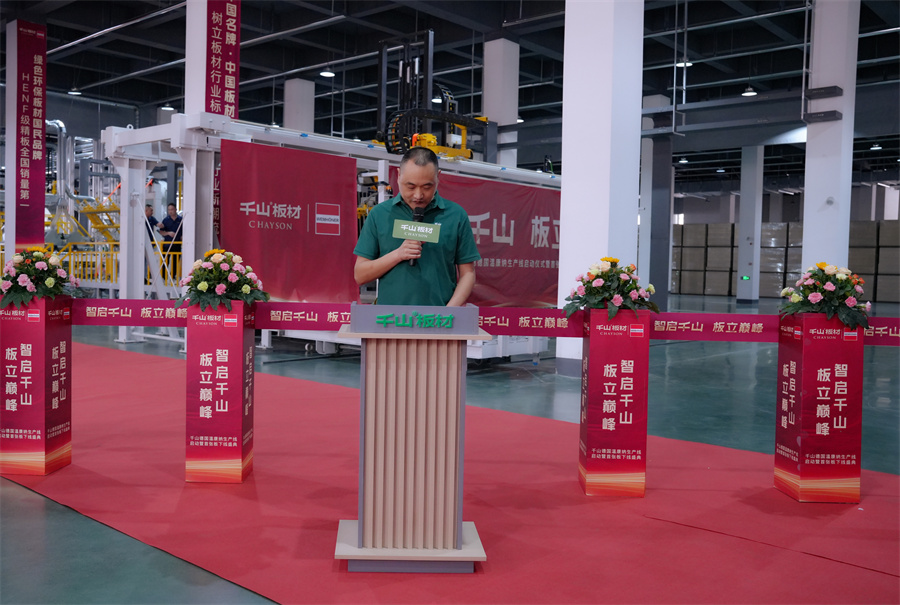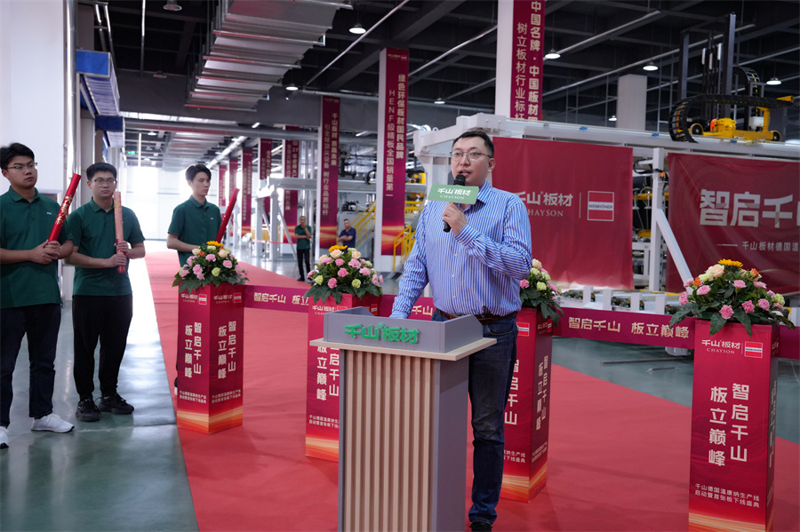 在消費(fèi)升級(jí)的大浪潮下,市場(chǎng)對(duì)板材的品質(zhì)、環(huán)保及個(gè)性化需求日益提升。溫康納生產(chǎn)線(xiàn)的引入,正是千山響應(yīng)市場(chǎng)趨勢(shì)、賦能集團(tuán)發(fā)展、共同為終端客戶(hù)創(chuàng)造價(jià)值的有力舉措。千山板材將攜手全國(guó)經(jīng)銷(xiāo)商,將這份“技術(shù)領(lǐng)先”優(yōu)勢(shì),轉(zhuǎn)化為強(qiáng)勁的市場(chǎng)競(jìng)爭(zhēng)力。 聚焦于生產(chǎn)制造環(huán)節(jié)的革新,邱總表示:德國(guó)溫康納生產(chǎn)線(xiàn)以高度自動(dòng)化、精細(xì)化、智能化和穩(wěn)定性著稱(chēng)。它的引入,將大幅提升效能、加碼品質(zhì),確保千山板材的出廠(chǎng)產(chǎn)品具備高端品質(zhì)的一致性,這也是千山踐行“品質(zhì)過(guò)硬”’承諾最堅(jiān)實(shí)的保障。