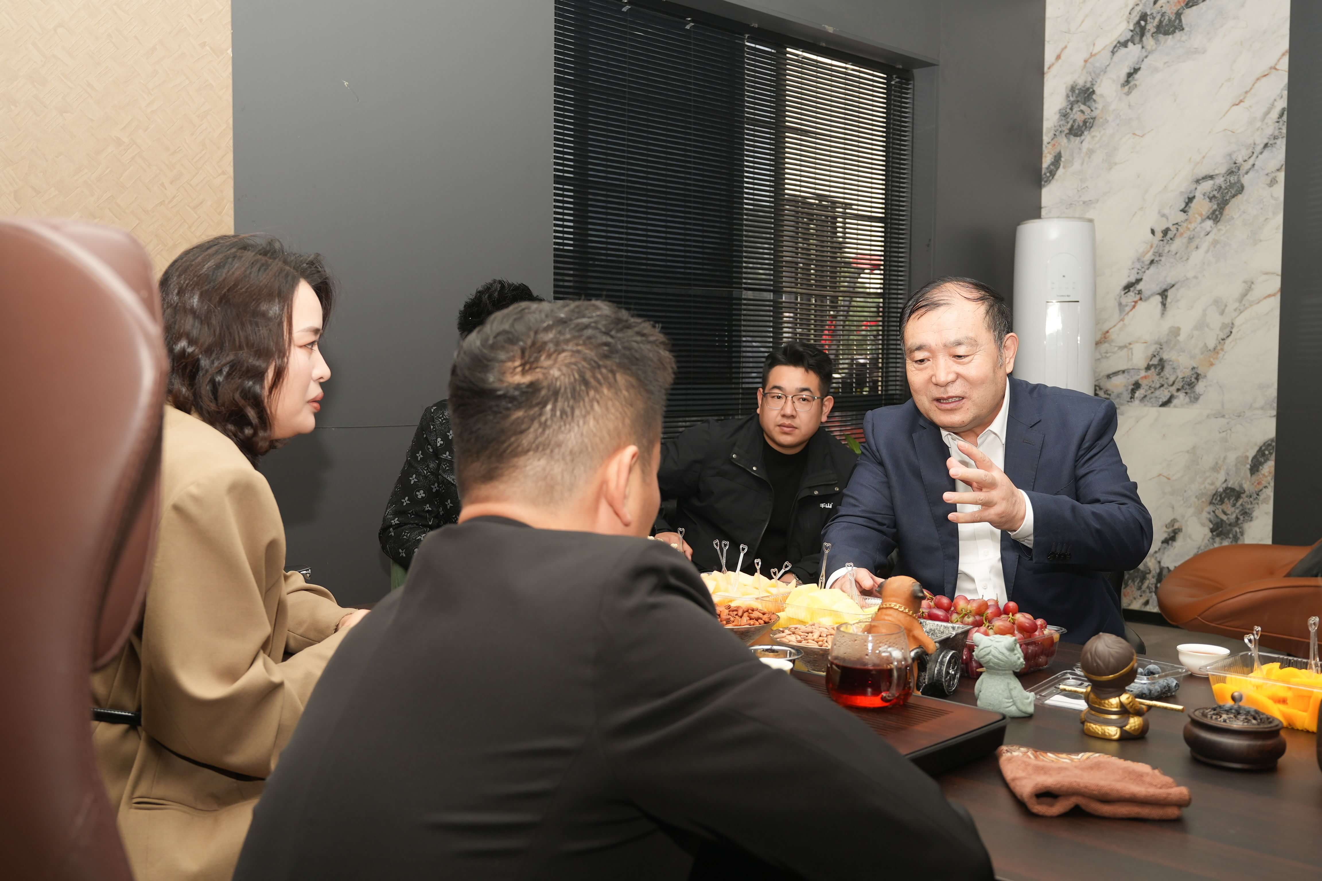 經銷商伙伴是集團開拓市場、服務用戶最親密的戰友,其辛勤付出與卓越貢獻是集團發展的基石。走訪中,董事長首先代表集團,向各位伙伴長期以來的信任與努力表達了誠摯的感謝。其后與其進行了坦誠而深入的對話,圍繞如何高質量發展,馬董指出:一要堅持高品質產品;二要提升倉儲配送服務;三要推動店面適應消費需求;四要構建完善業務體系;五要強化線上宣傳工作。
