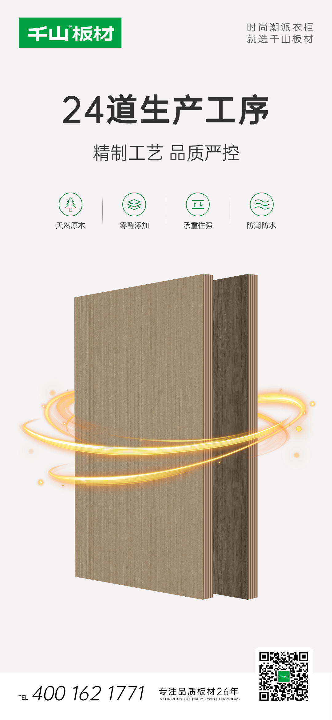 千山板材實木多層板以高環保性、高穩定性、高防潮性等多重領先優勢,滿足千萬家庭對品質的更高要求。歡迎光臨當地千山板材品牌專賣店選購。