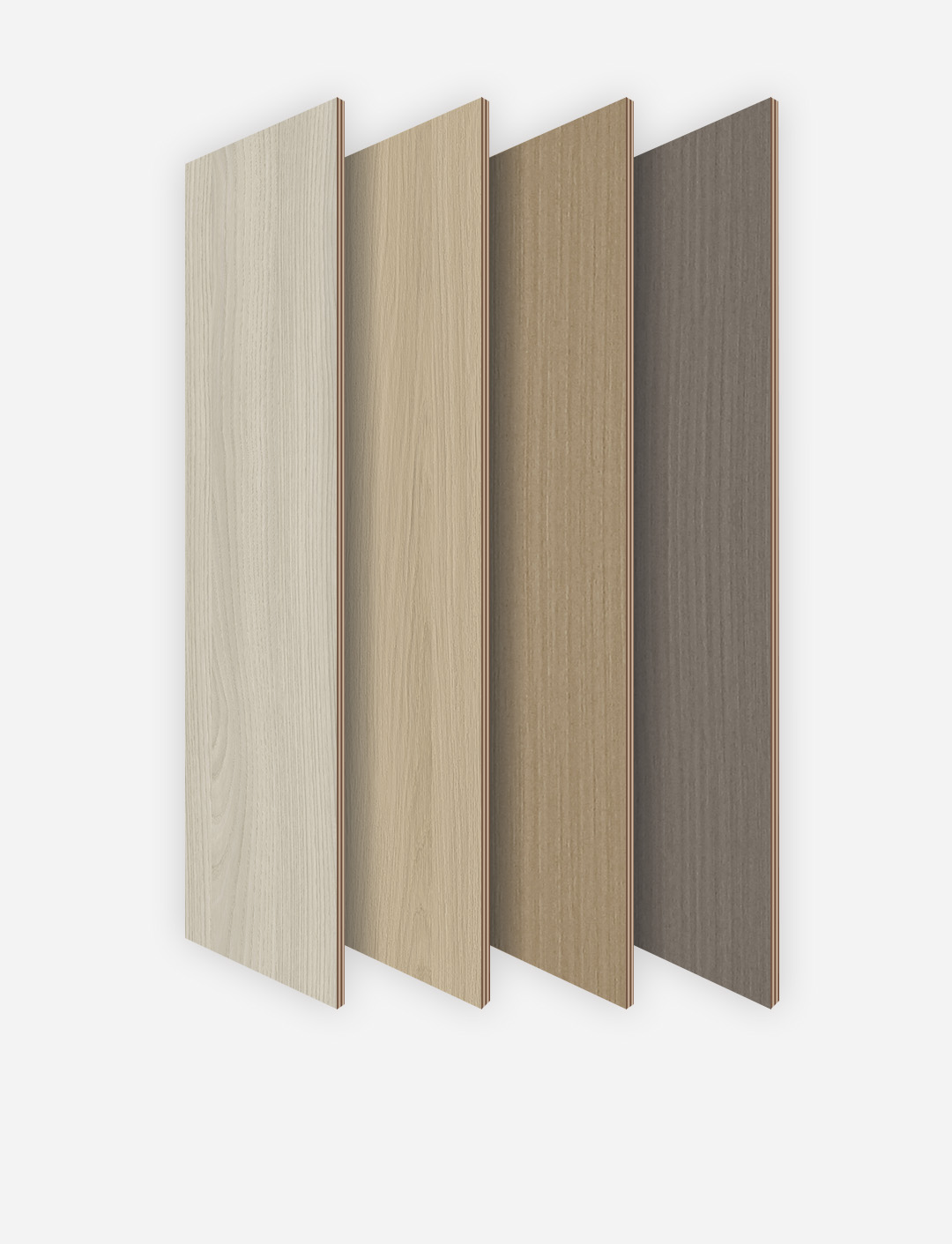 桉木木質堅韌光滑,木紋緊密,不易變形,是制作健康家具的上好原料。千山板材實木多層板甄選A級桉木,選取優質樹干部分,旋切成單板,片片人工篩選,確保成品板材硬度更高、握釘力更強,更加堅固耐用。