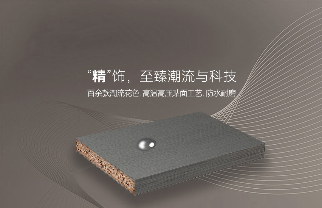 飾面采用高壓底紙、進口油墨印刷,成色效果更清晰。百余種潮流花色,滿足不同風(fēng)格需求。2000噸超強壓機高溫壓貼,30秒超長貼合,表面防水防潮、磨抗劃。