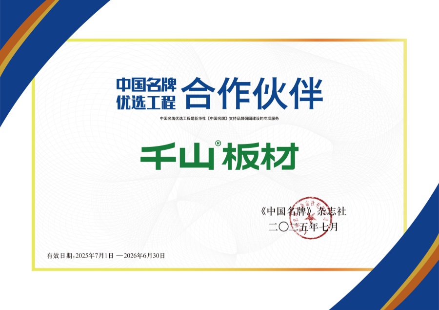 7月23日,千山集團(tuán)傳來(lái)重磅喜訊——憑借卓越的產(chǎn)品品質(zhì)、深厚的品牌積淀與領(lǐng)先的行業(yè)影響力,千山板材成為中國(guó)名牌優(yōu)選工程合作伙伴。這一榮譽(yù)不僅是對(duì)千山多年來(lái)堅(jiān)守品質(zhì)、創(chuàng)新發(fā)展的高度肯定,更標(biāo)志著千山發(fā)展邁入全新階段。 中國(guó)名牌優(yōu)選工程是新華社《中國(guó)名牌》支持品牌強(qiáng)國(guó)建設(shè)的專項(xiàng)服務(wù),旨在推動(dòng)中國(guó)品牌發(fā)展,